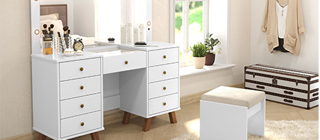 A penteadeira Eloá foi criada para quem ama ter um cantinho especial. Romântica e funcional essa penteadeira conta com 9 gavetas que ajudam a organizar todas as coisas que as mulheres usam no dia a dia.