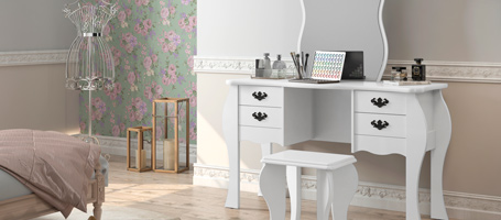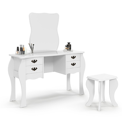 A penteadeira Duda foi criada para quem ama ter um cantinho especial. Romântica e funcional essa penteadeira conta com 4 gavetas que ajudam a organizar todas as coisas que as mulheres usam no dia a dia.