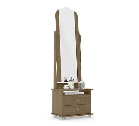 Com um design contemporâneo, o Toucador Criado possui 2 gavetas e um espelho de corpo, se tornando um móvel útil e funcional.